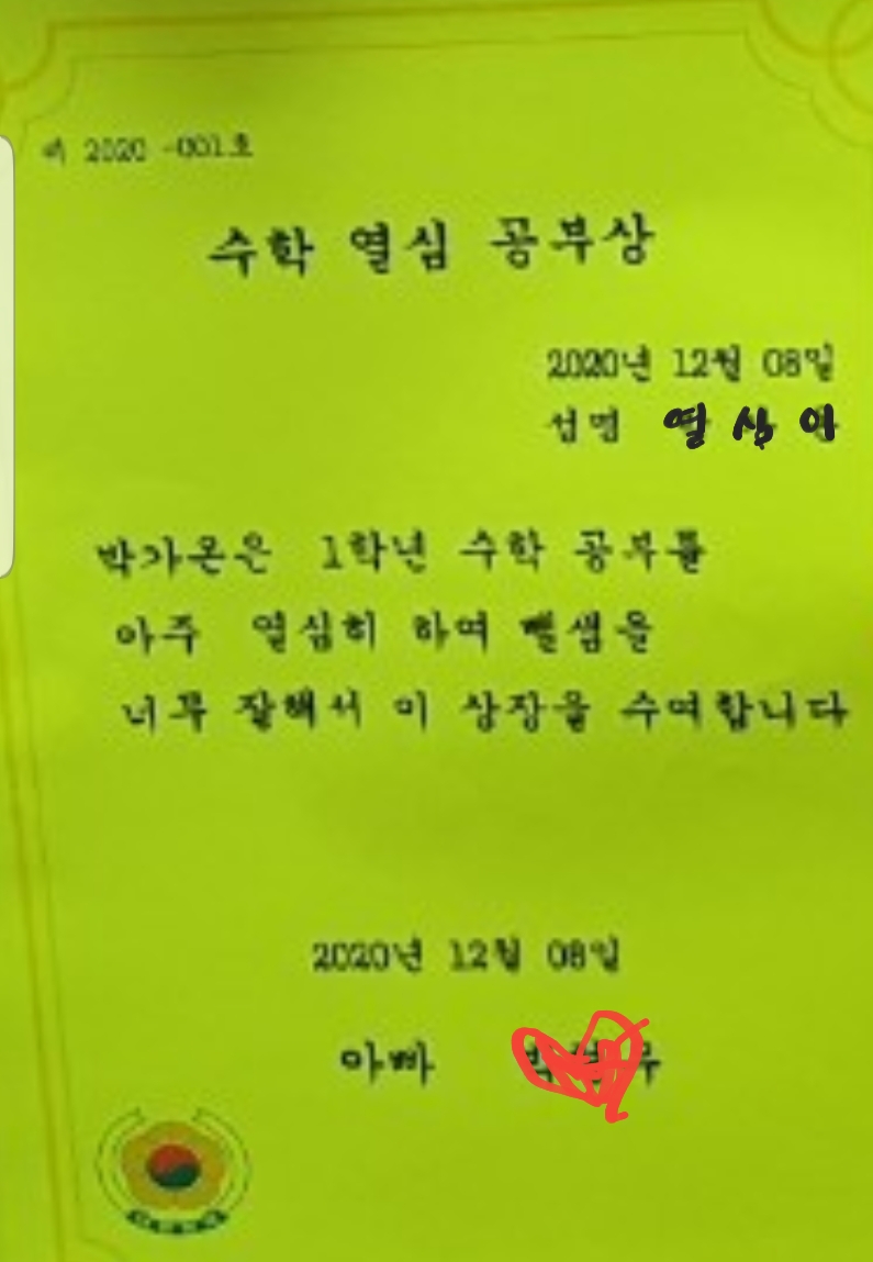 동기부여와 자아효능감.성취감을 조금 높여주기위한 엄마 아빠만의 특별상이나 상품을 준비하는것도 좋다.