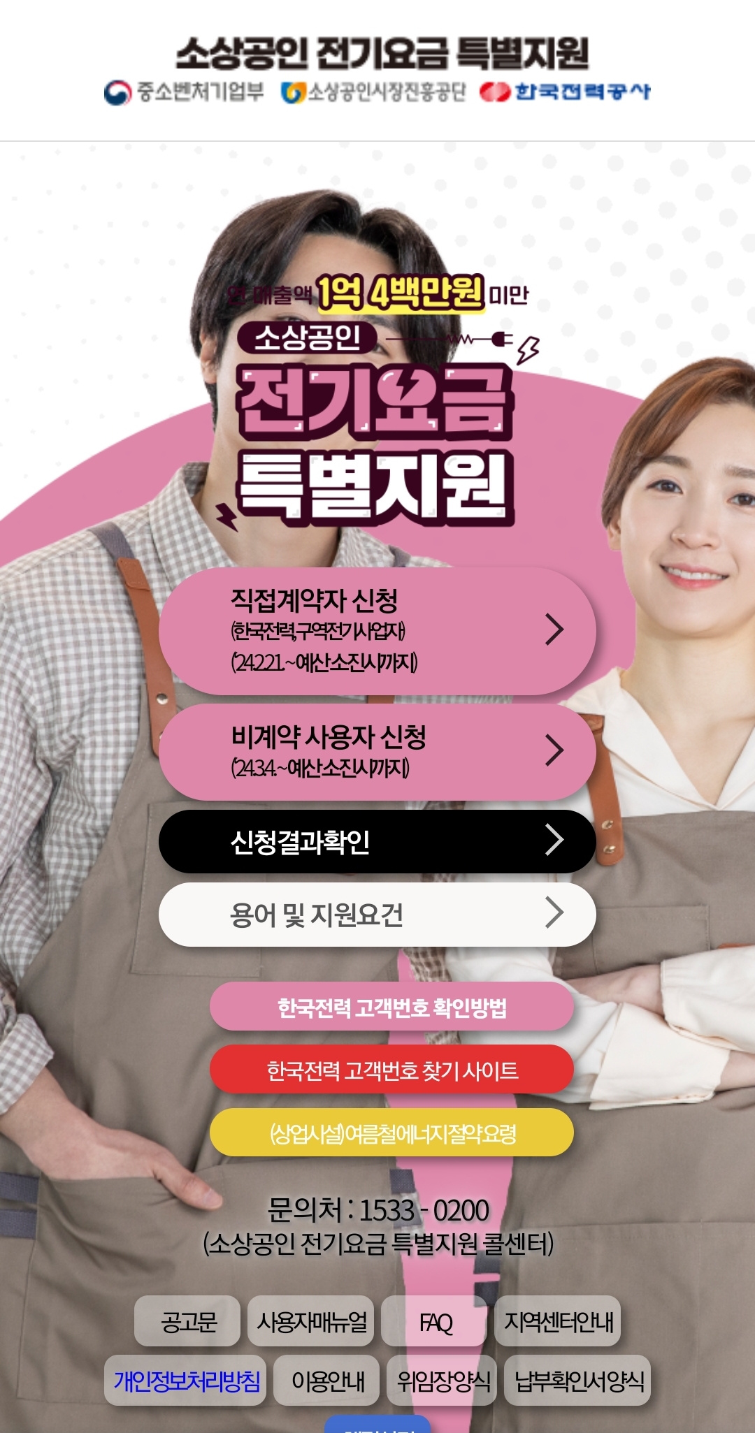 소상공인 전기요금 특별지원 소개, 신청하기, 신청결과 확인 등