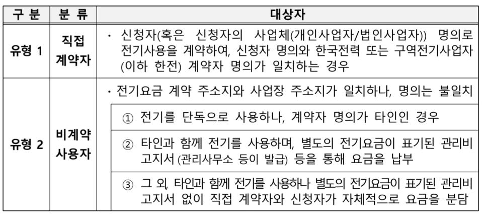 ③사업장용 전기요금(주거용 등 제외)을 부담하는 개인·법인사업자