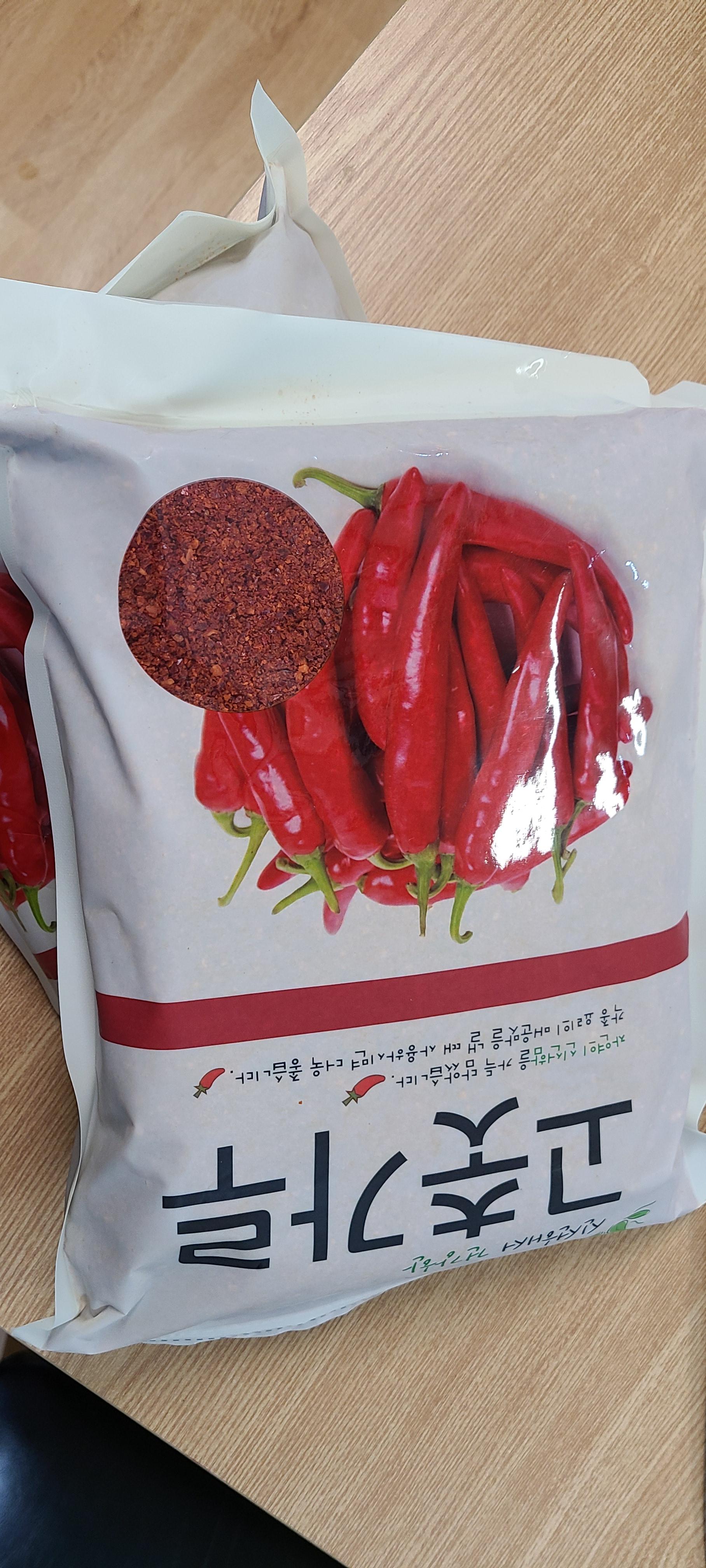 고춧가루 5kg정도 커다란 대야에 쏟아 붓고