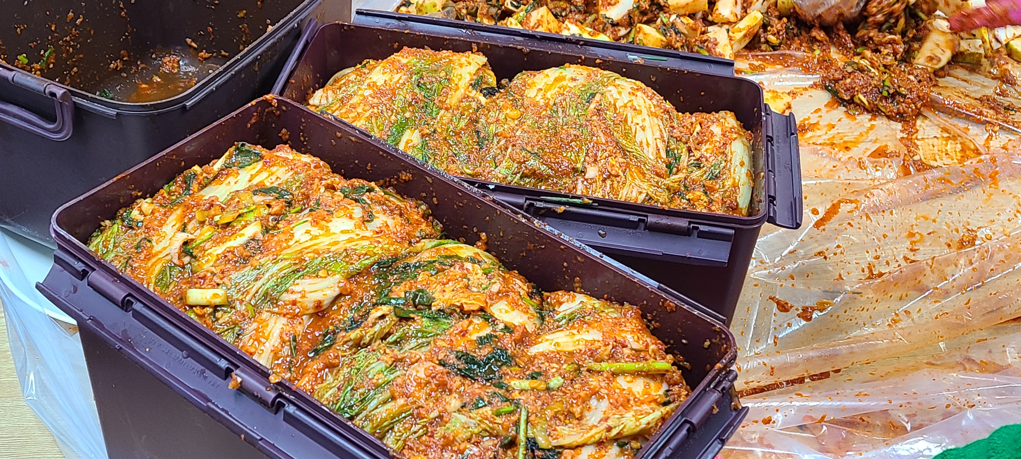 You can make kimjang using various vegetables. Depending on what the main ingredients are, there are cabbage kimchi, radish kimchi, green onion kimchi, and Gat kimchi