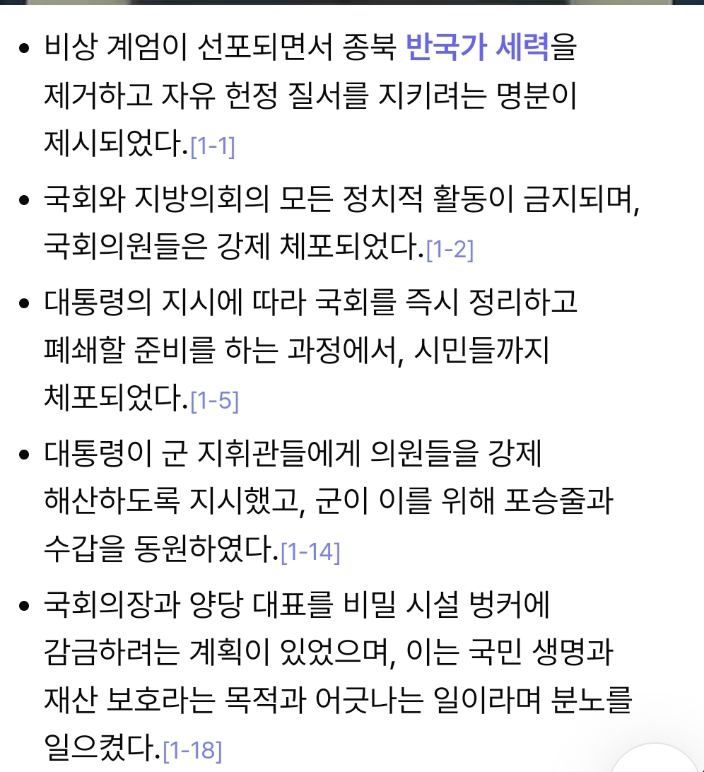 대통령의 지시에 따라 국회를 즉시 정리하고 폐쇄할 준비를 하는 과정에서, 시민들까지 체포되었어요.