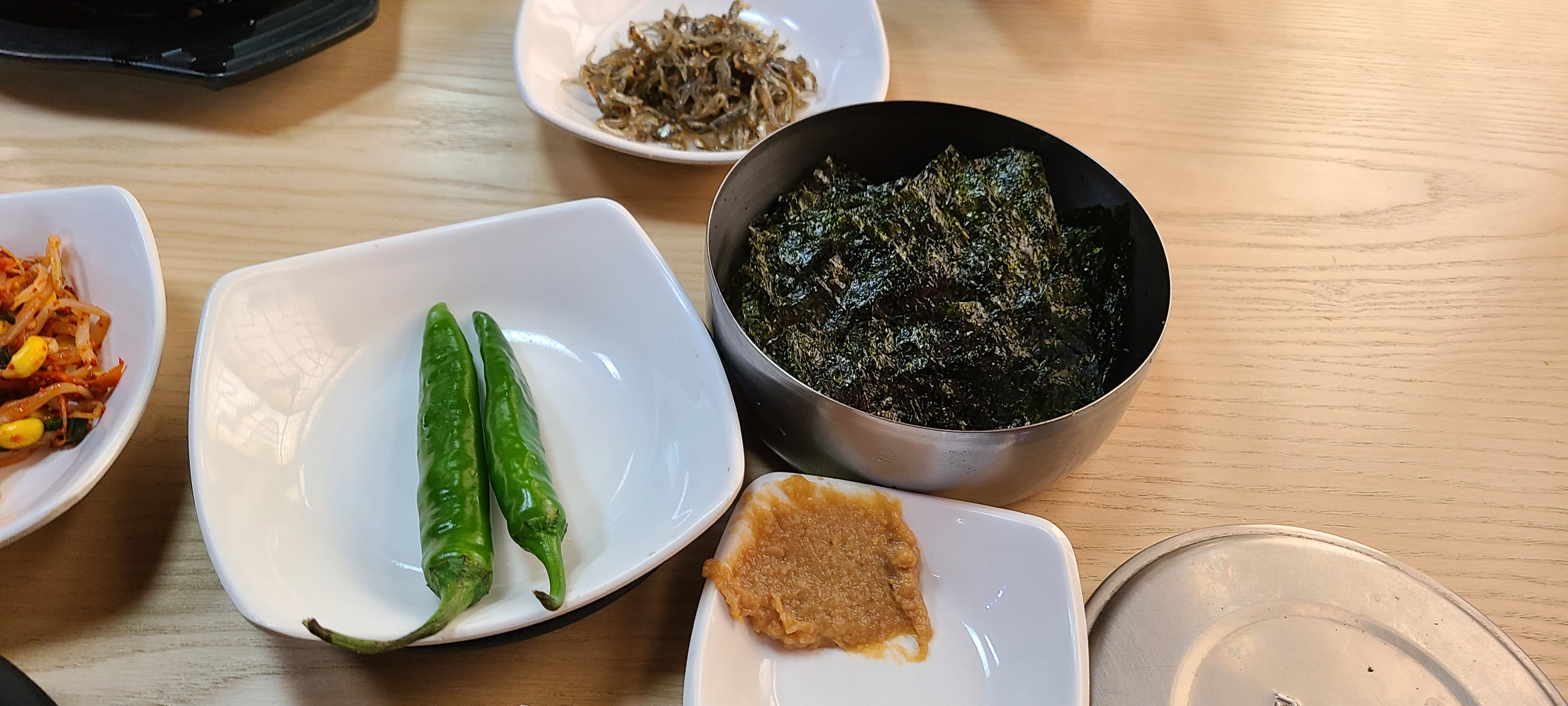 식탁 옆쪽으로 양념처럼 놓아둔 김구이가 있다.