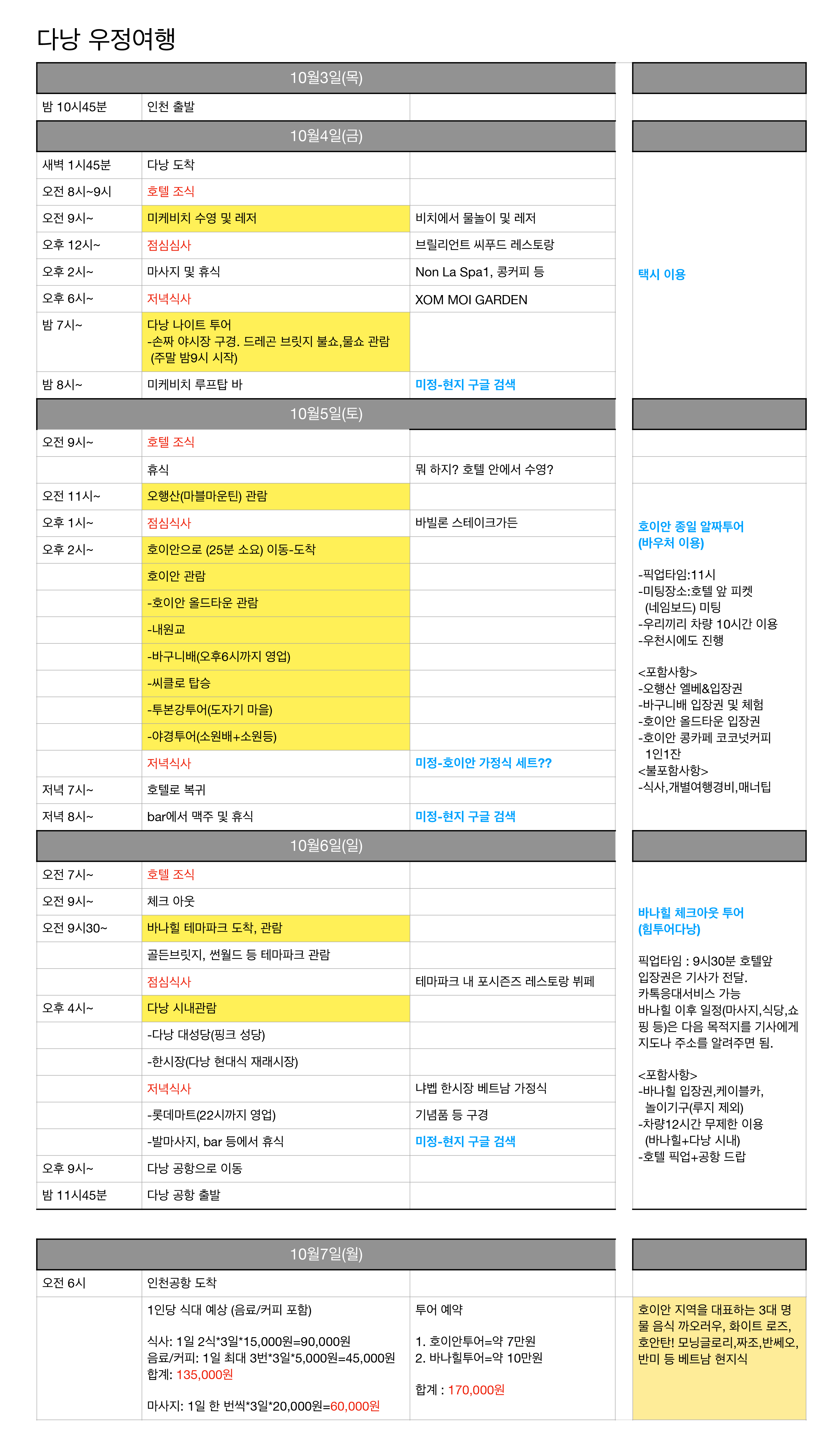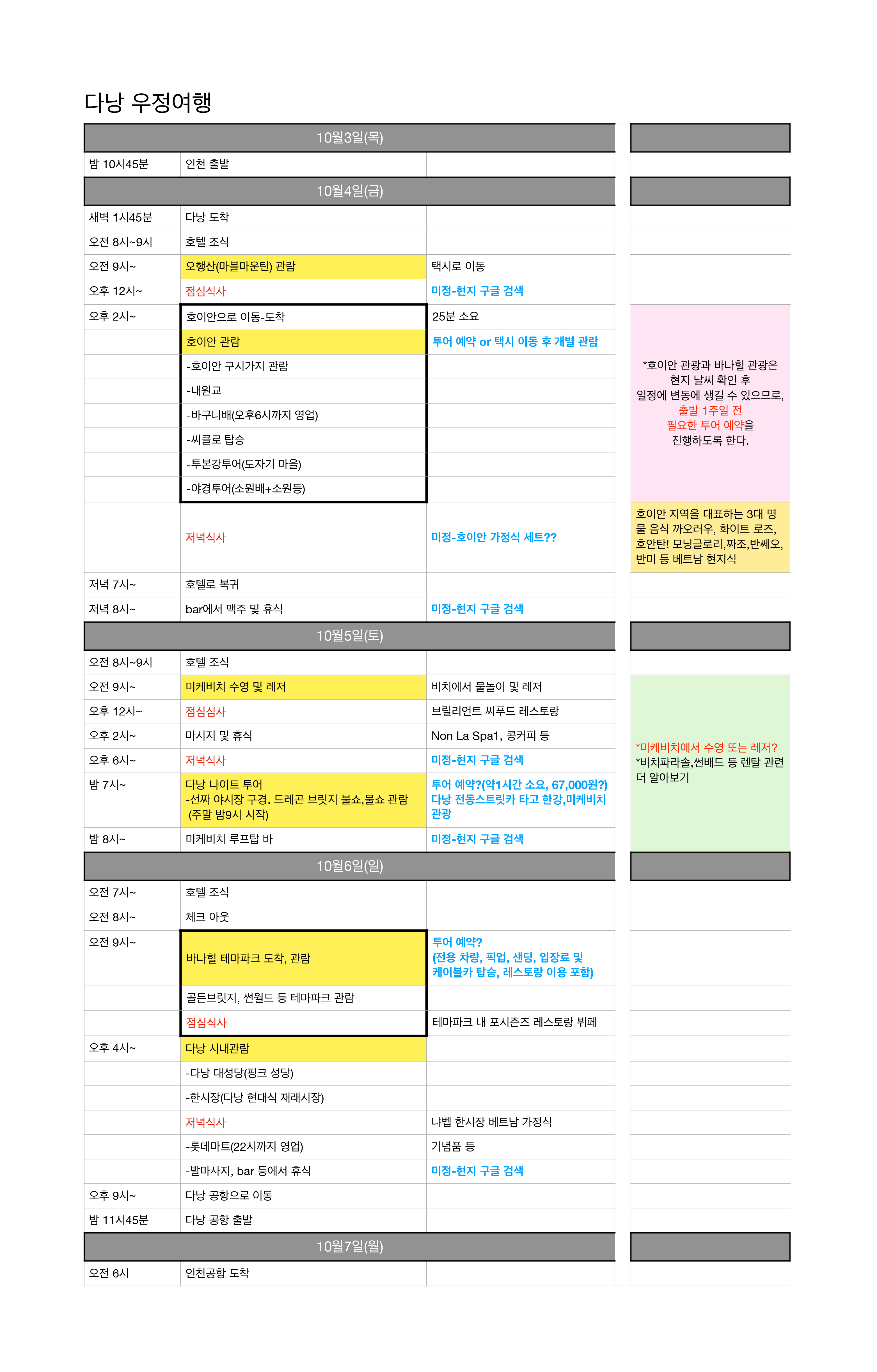 두 일정을 가지고 날씨에 맞춰 변경해서 다녔습니다