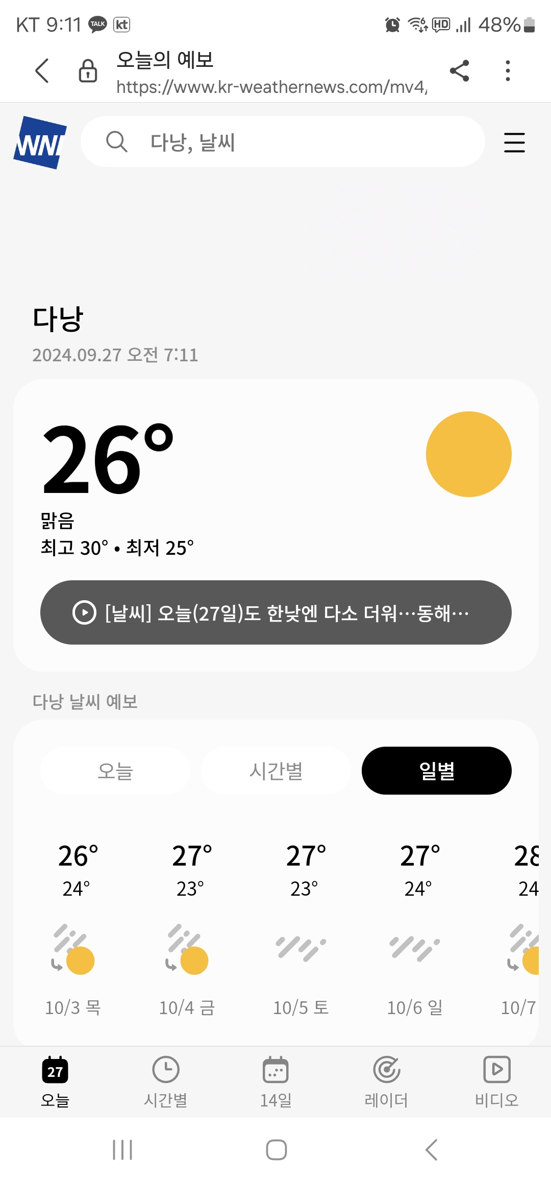 다행히 여행 일주일 전 일기예보는 하루 제외하고 ☔️비였지만, 정작 여행할 때는 하루만 비 내리고 나머지 2일은 살짝 구름, 나머지 2일은 🌞님이 화창해서 여행하기 딱 좋은 날씨였습니다.